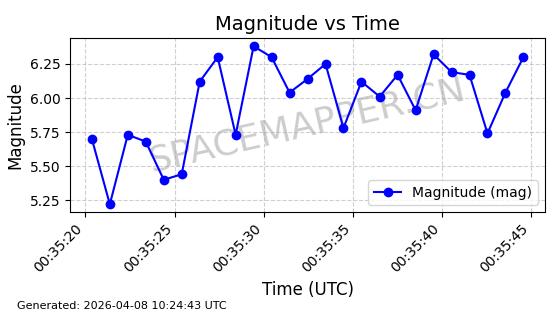 | STARLINK-31933 | 59874 | 59874 | 2024-05-24 同日期轨道 2024-098S 同批次轨道 | 在轨 | 94分钟 | 43.0032 | 482.347 | 483.775 | 0.0001040 | 2026-04-11 00:50:08 | ||
