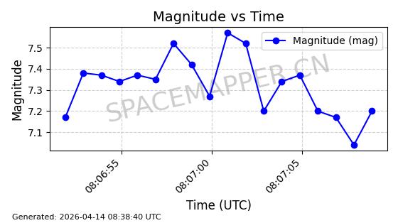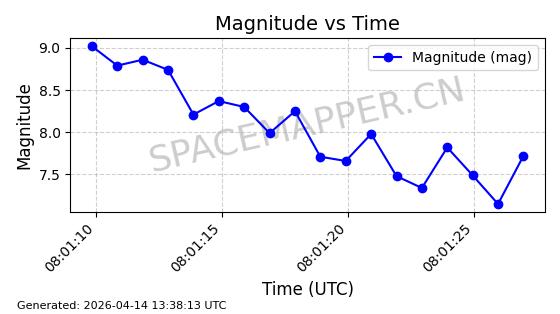 | 卫星名称 | AOE ID | NORAD ID | 发射日期 国际编号 | 在轨状态 | 轨道周期 | 轨道倾角 (度) | 近地点 (Km) | 远地点 (Km) | 偏心率 | 更新时间 (UTC) | 近期光变曲线 | 服务 |