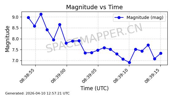 | STARLINK-32039 | 60604 | 60604 | 2024-08-20 同日期轨道 2024-150X 同批次轨道 | 在轨 | 94分钟 | 53.1601 | 474.405 | 476.101 | 0.0001237 | 2026-04-12 20:32:26 | ||