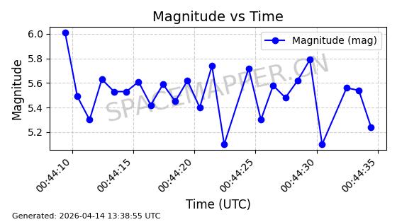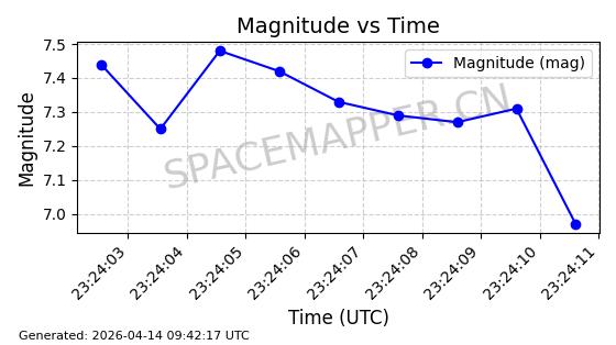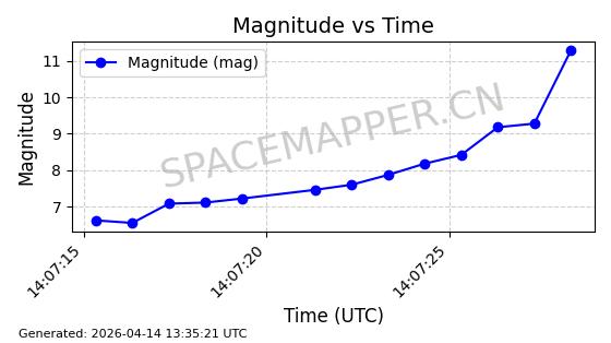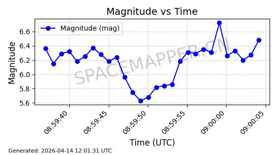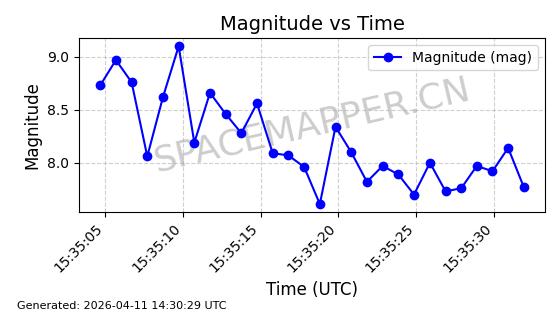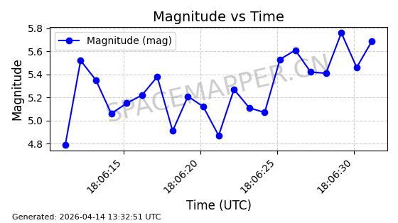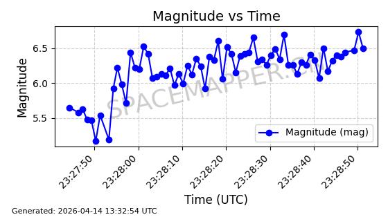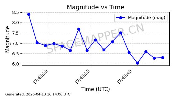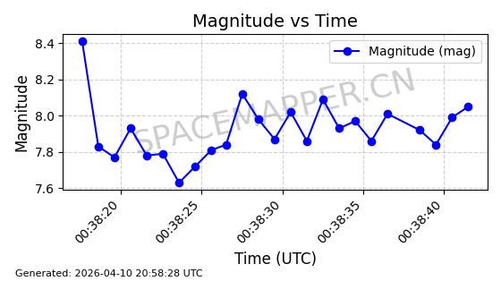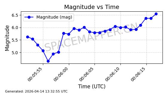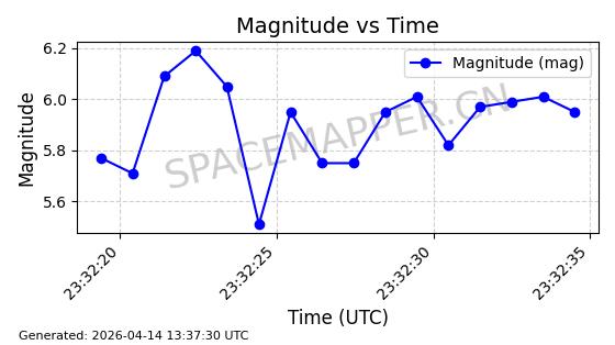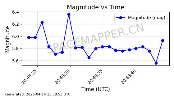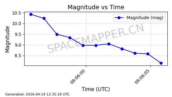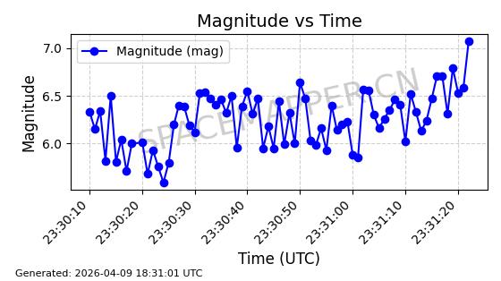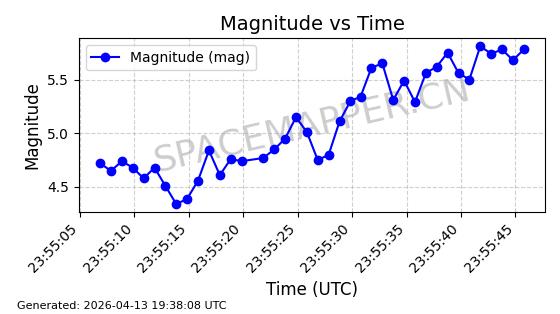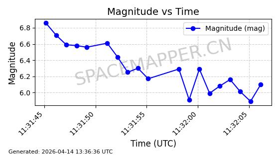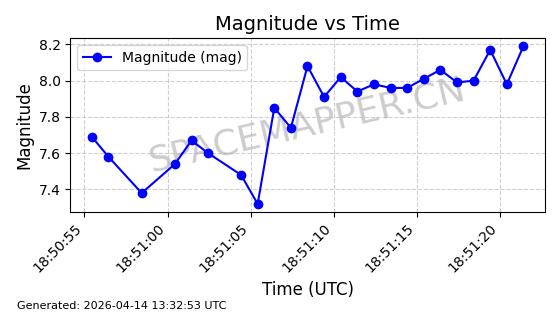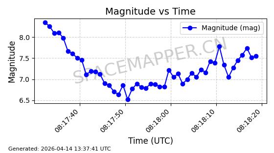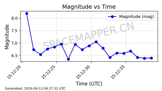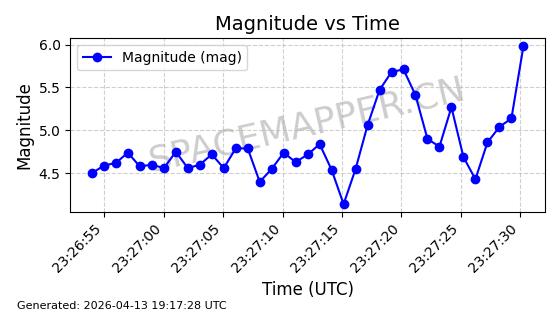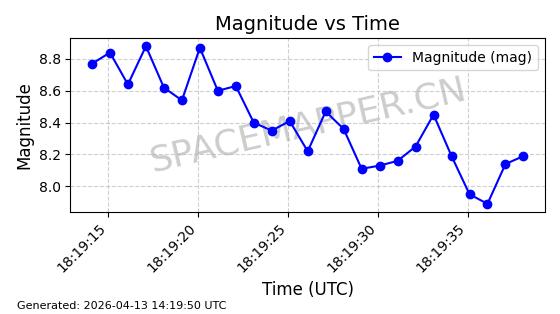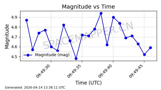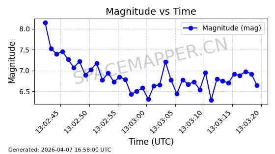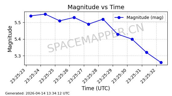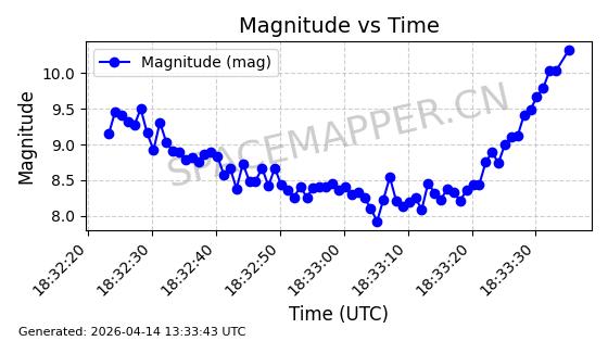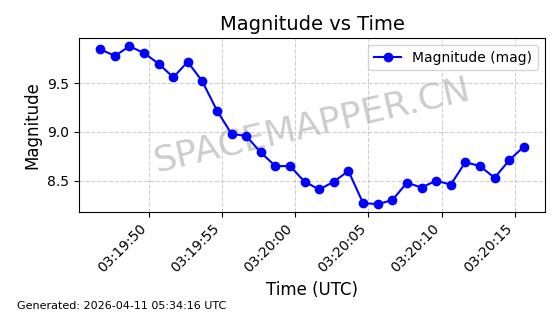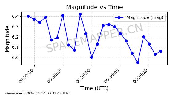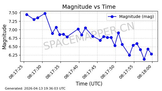 | STARLINK-32011 | 60030 | 60030 | 2024-06-08 同日期轨道 2024-111Q 同批次轨道 | 在轨 | 94分钟 | 53.1597 | 474.52 | 476.028 | 0.0001100 | 2026-04-13 06:00:02 | ||
