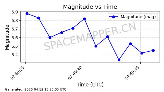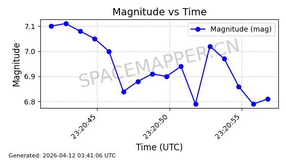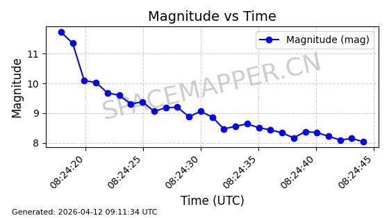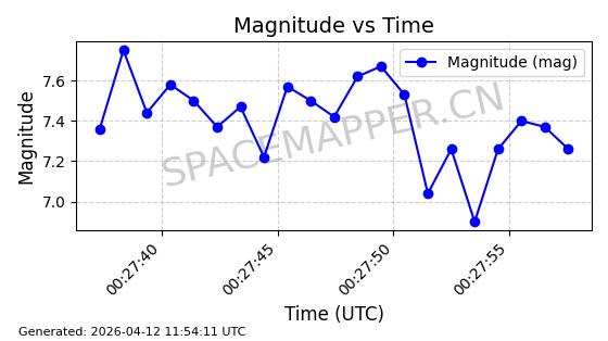 | STARLINK-32012 | 60027 | 60027 | 2024-06-08 同日期轨道 2024-111M 同批次轨道 | 在轨 | 94分钟 | 53.1594 | 474.526 | 475.91 | 0.0001009 | 2026-04-12 18:30:41 | ||