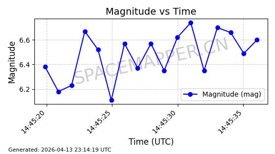 | STARLINK-32044 | 60092 | 60092 | 2024-06-23 同日期轨道 2024-117B 同批次轨道 | 在轨 | 94分钟 | 53.1609 | 474.566 | 475.944 | 0.0001004 | 2026-04-13 01:33:00 | ||