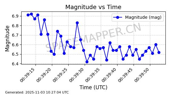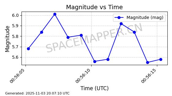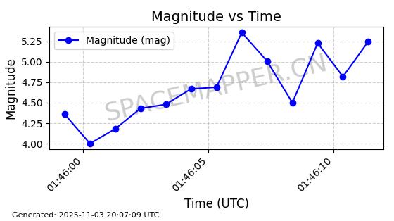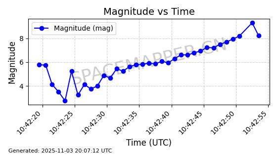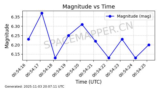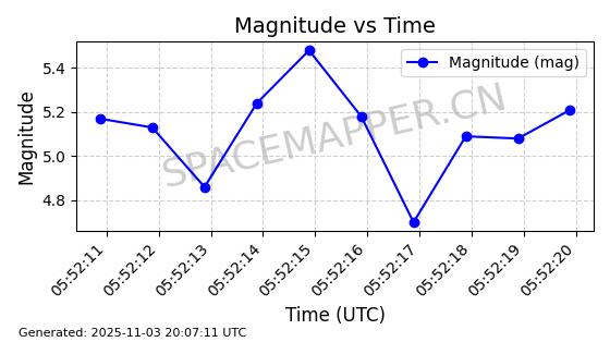 | STARLINK-32114 | 60287 | 60287 | 2024-07-28 同日期轨道 2024-132K 同批次轨道  |  在轨 | 94分钟 | 53.1617 | 474.519 | 475.945 | 0.0001040 | 2025-11-02  05:53:13  |  ||