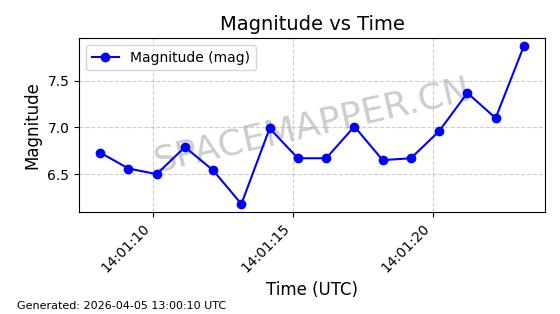 | STARLINK-32095 | 59692 | 59692 | 2024-05-08 同日期轨道 2024-086L 同批次轨道 | 已陨落 | 89分钟 | 42.9690 | 197.527 | 211.449 | 0.0010574 | 2025-04-14 08:00:02 | ||
