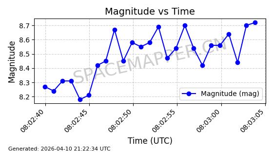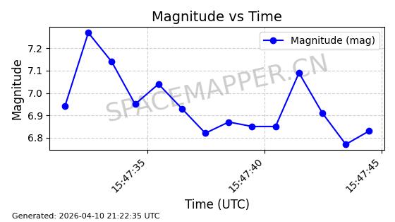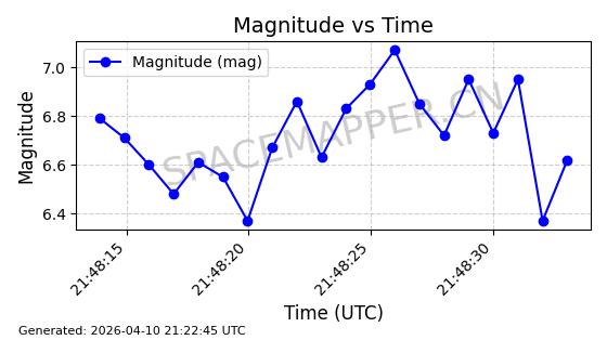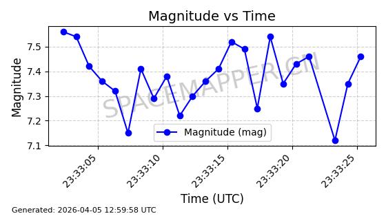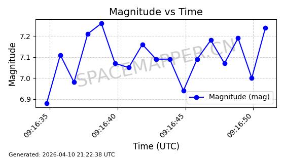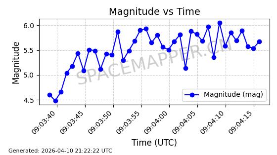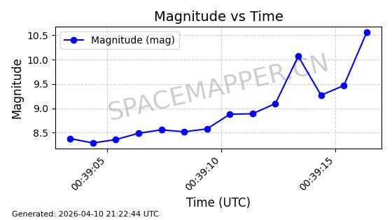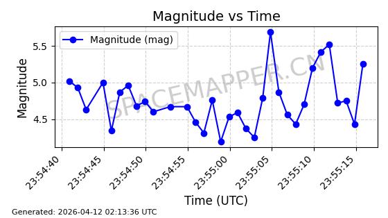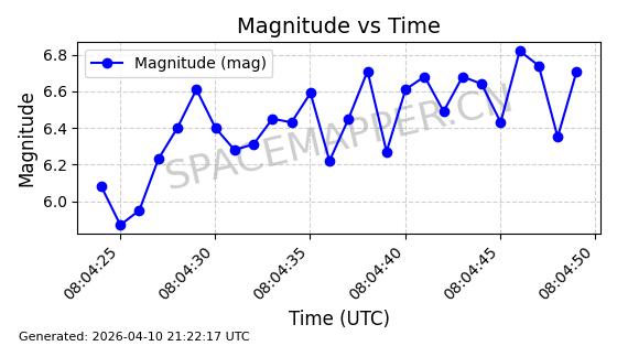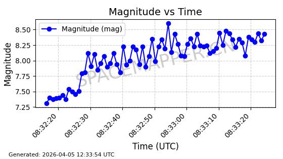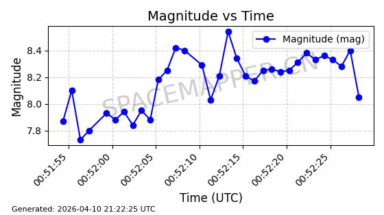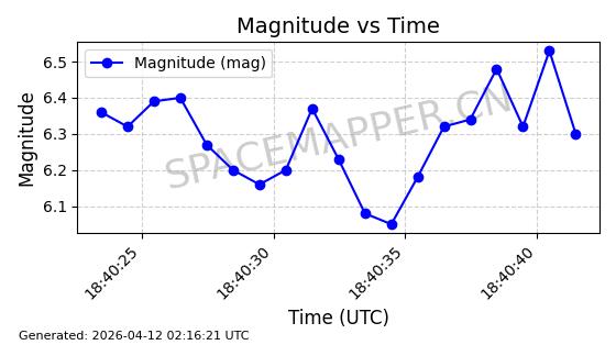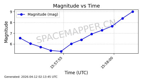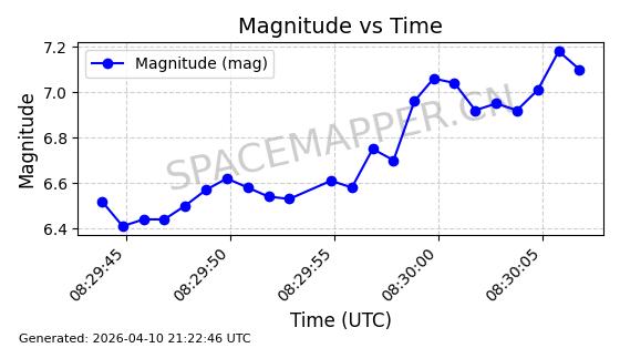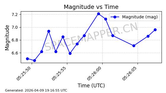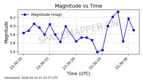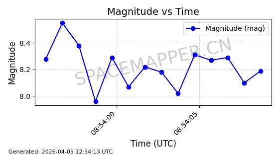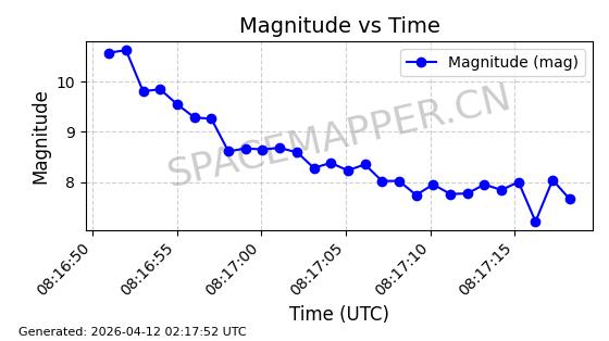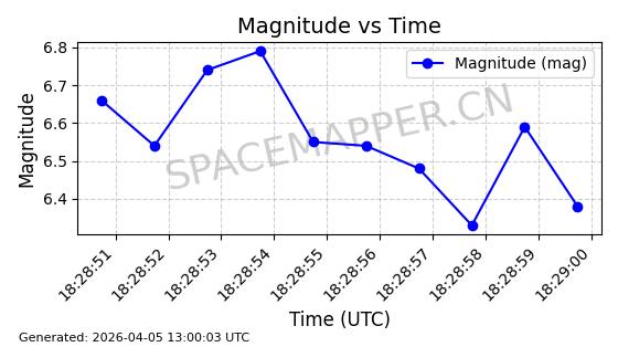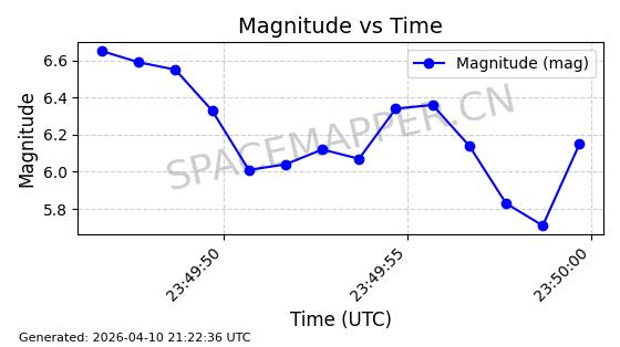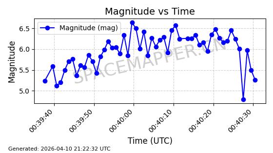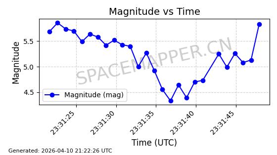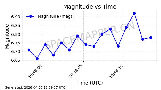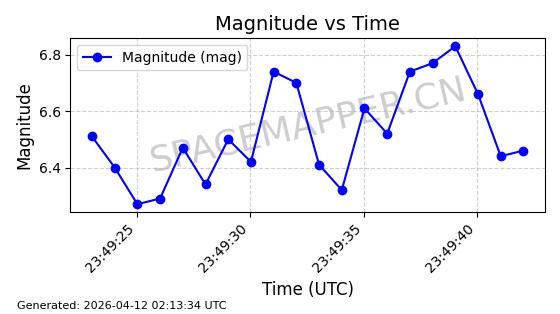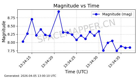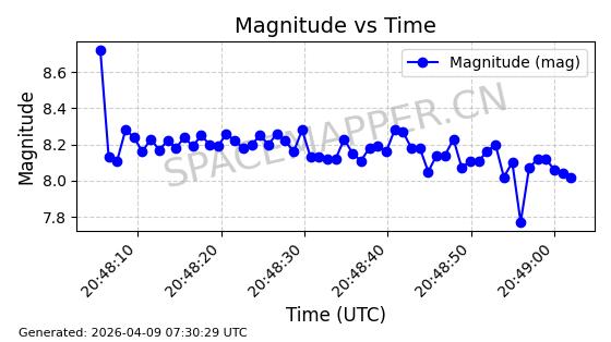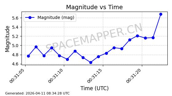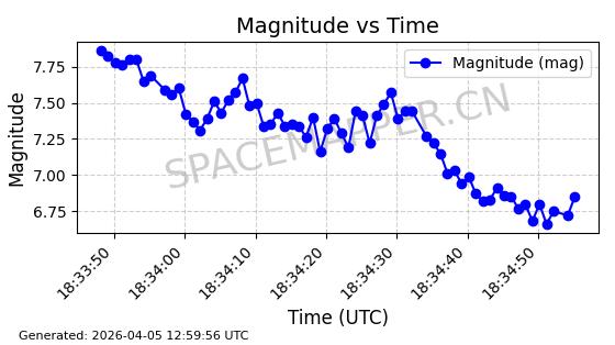 | STARLINK-32165 | 60599 | 60599 | 2024-08-20 同日期轨道 2024-150S 同批次轨道 | 在轨 | 94分钟 | 53.1597 | 474.261 | 476.235 | 0.0001440 | 2026-04-11 03:00:42 | ||