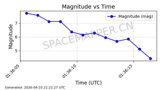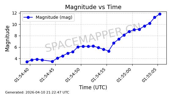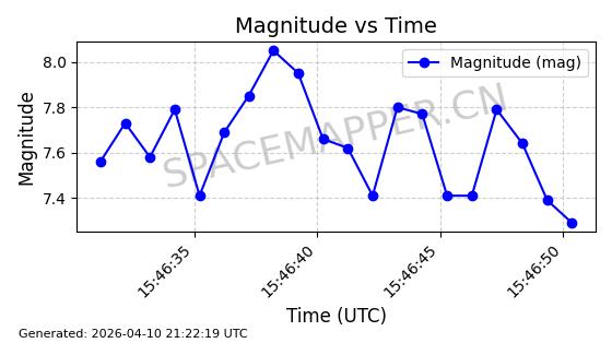| STARLINK-32154 | 60276 | 60276 | 2024-07-27 同日期轨道 2024-131X 同批次轨道 | 在轨 | 94分钟 | 53.1602 | 474.56 | 475.96 | 0.0001020 | 2026-04-11 03:45:51 | ||