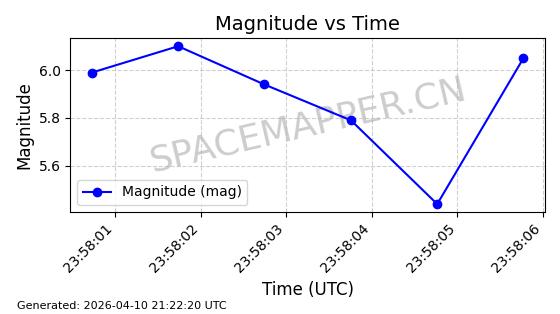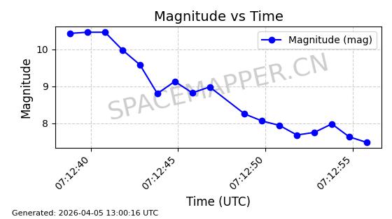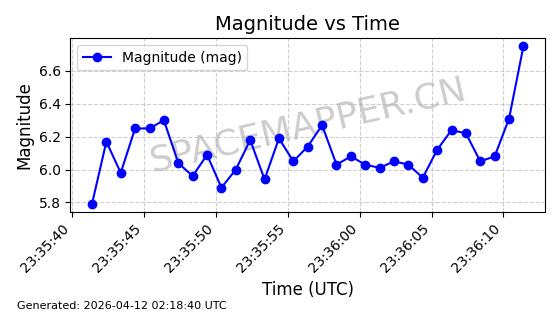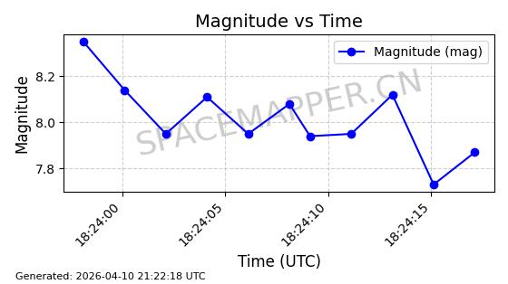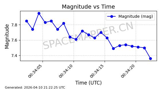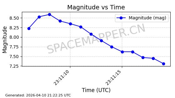 | STARLINK-32098 | 59704 | 59704 | 2024-05-08 同日期轨道 2024-086Y 同批次轨道 | 在轨 | 94分钟 | 43.0008 | 482.338 | 483.812 | 0.0001074 | 2026-04-11 01:57:04 | ||