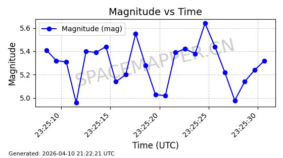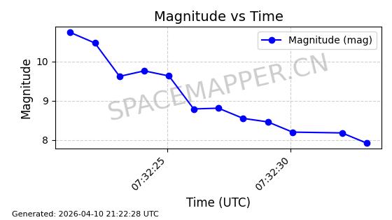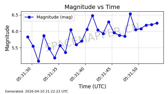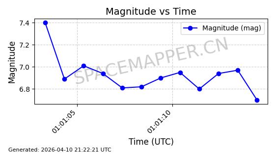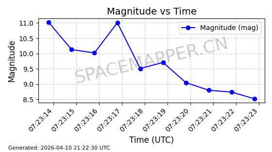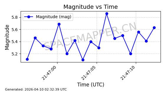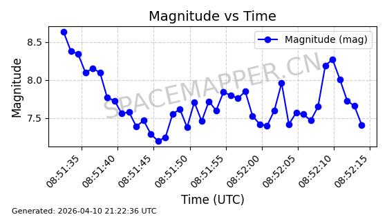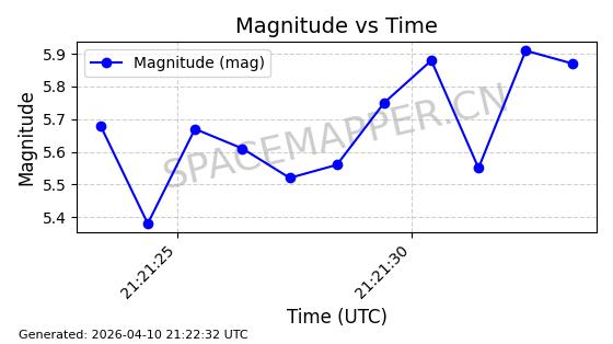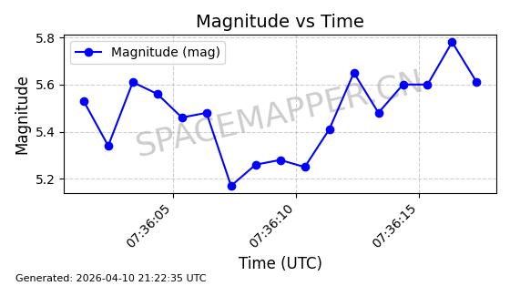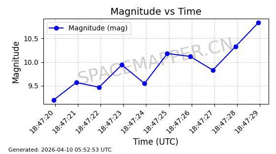 | STARLINK-32151 | 60299 | 60299 | 2024-07-28 同日期轨道 2024-132X 同批次轨道 | 在轨 | 94分钟 | 53.1601 | 474.701 | 475.737 | 0.0000755 | 2026-04-10 19:16:43 | ||
