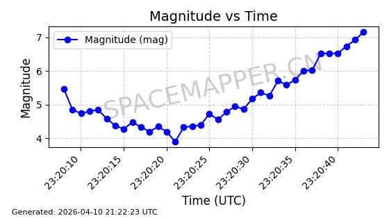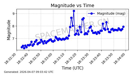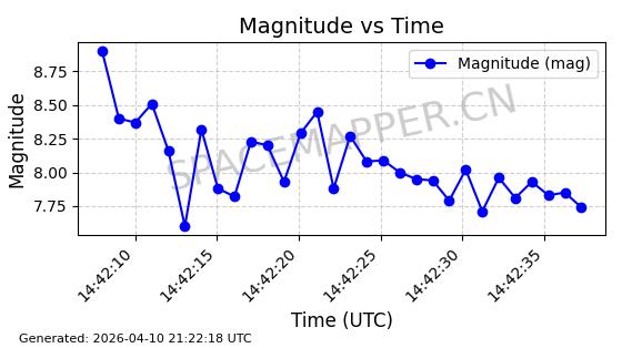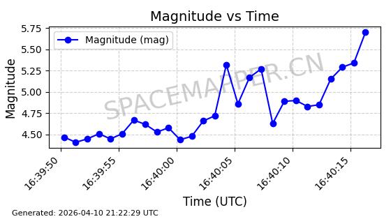 | STARLINK-32149 | 60292 | 60292 | 2024-07-28 同日期轨道 2024-132Q 同批次轨道 | 在轨 | 94分钟 | 53.1604 | 474.27 | 476.192 | 0.0001402 | 2026-04-10 20:39:41 | ||