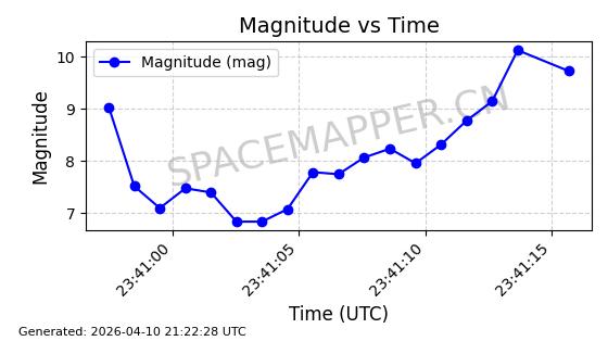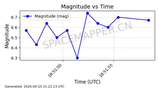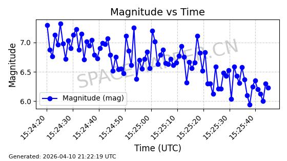| STARLINK-32139 | 61510 | 61510 | 2024-10-15 同日期轨道 2024-183B 同批次轨道 | 在轨 | 94分钟 | 53.1617 | 474.444 | 475.954 | 0.0001101 | 2026-04-10 23:14:00 | ||
