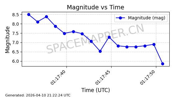 | STARLINK-32087 | 59702 | 59702 | 2024-05-08 同日期轨道 2024-086W 同批次轨道 | 在轨 | 94分钟 | 42.9986 | 482.22 | 483.816 | 0.0001163 | 2026-04-10 16:00:40 | ||