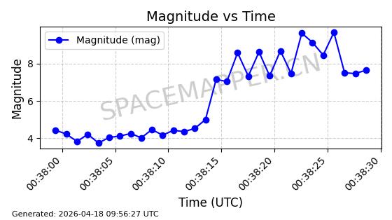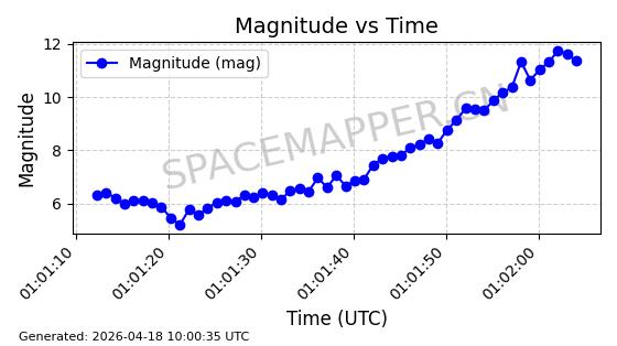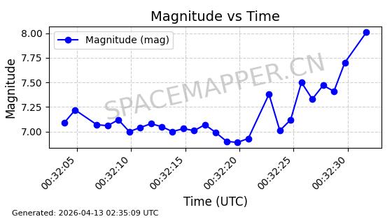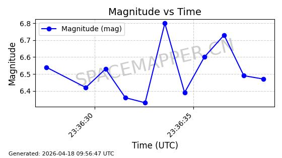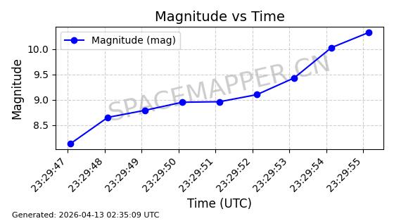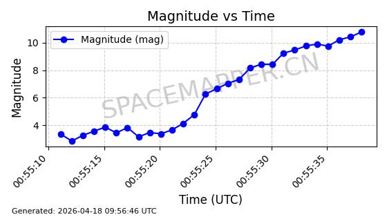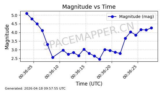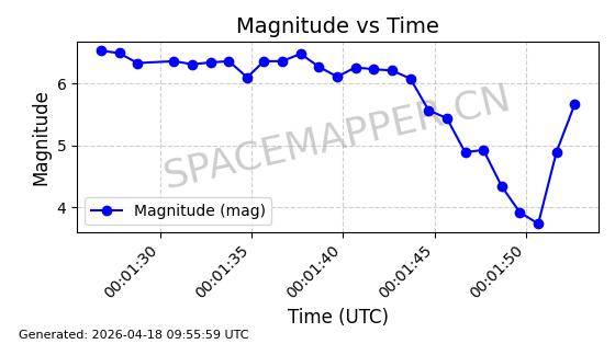 | STARLINK-32155 | 60274 | 60274 | 2024-07-27 同日期轨道 2024-131V 同批次轨道 | 在轨 | 94分钟 | 53.1591 | 474.352 | 476.094 | 0.0001270 | 2026-04-17 01:51:25 | ||