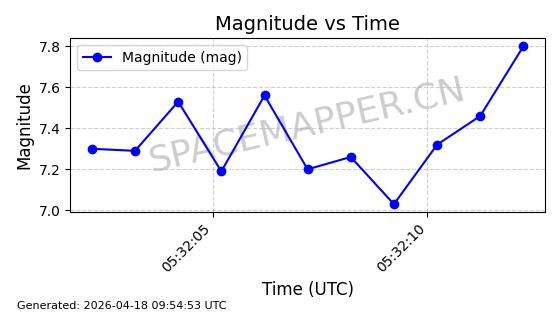 | STARLINK-32118 | 60280 | 60280 | 2024-07-28 同日期轨道 2024-132C 同批次轨道 | 在轨 | 94分钟 | 53.1607 | 474.575 | 475.869 | 0.0000944 | 2026-04-16 18:35:59 | ||