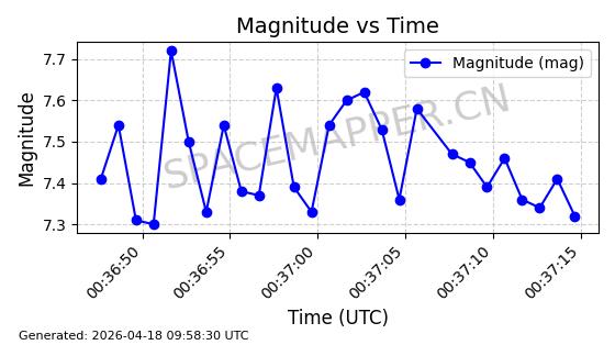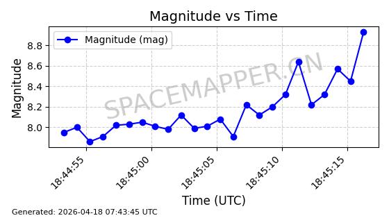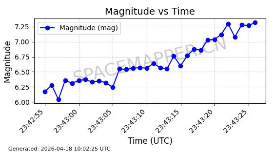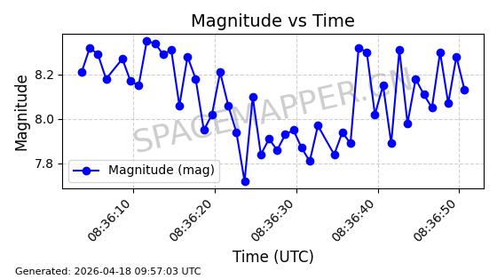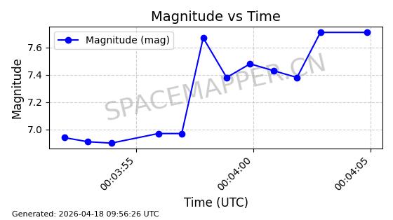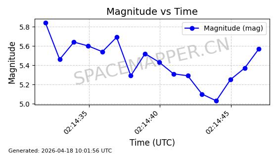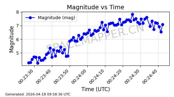 | STARLINK-32088 | 59693 | 59693 | 2024-05-08 同日期轨道 2024-086M 同批次轨道 | 在轨 | 94分钟 | 43.0008 | 482.345 | 483.571 | 0.0000893 | 2026-04-16 23:14:11 | ||