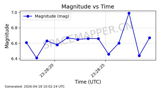 | 卫星名称 | AOE ID | NORAD ID | 发射日期 国际编号 | 在轨状态 | 轨道周期 | 轨道倾角 (度) | 近地点 (Km) | 远地点 (Km) | 偏心率 | 更新时间 (UTC) | 近期光变曲线 | 服务 |