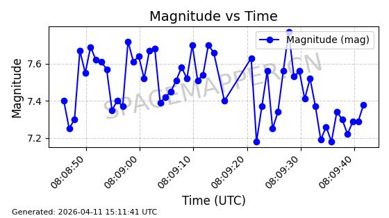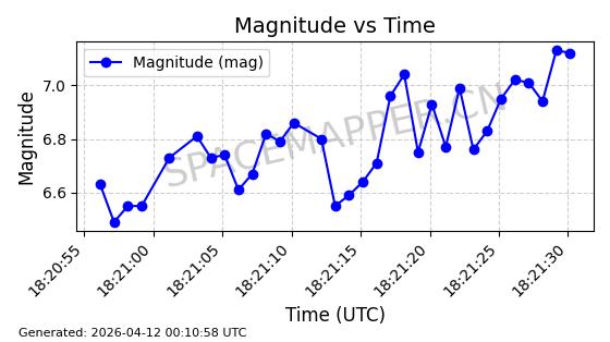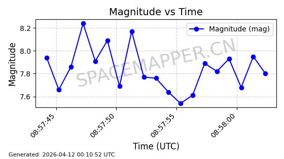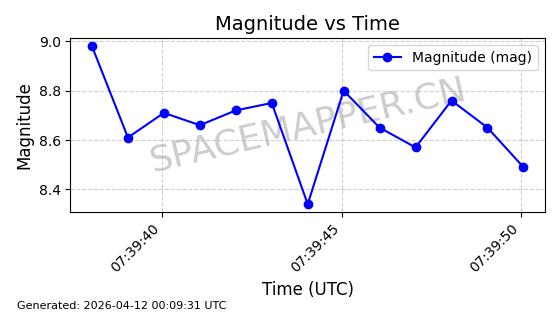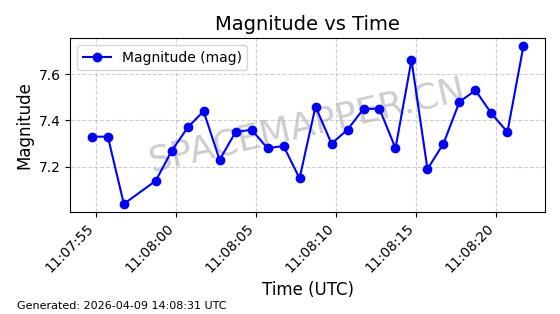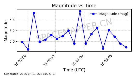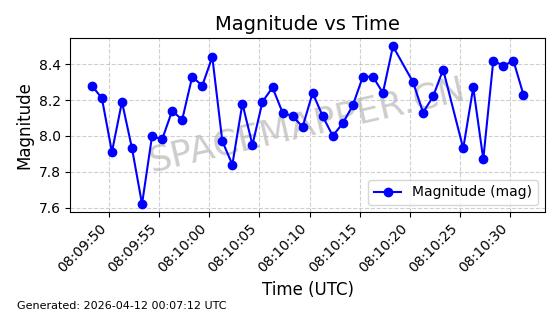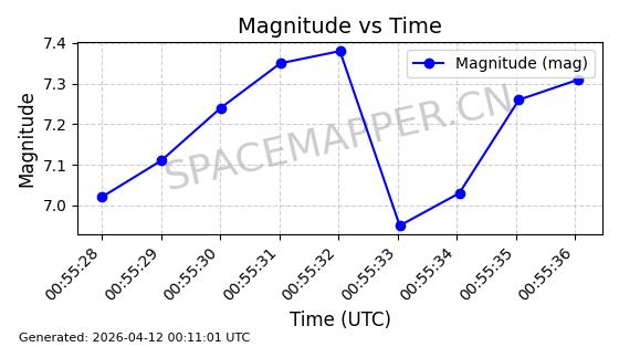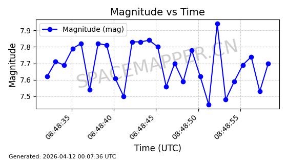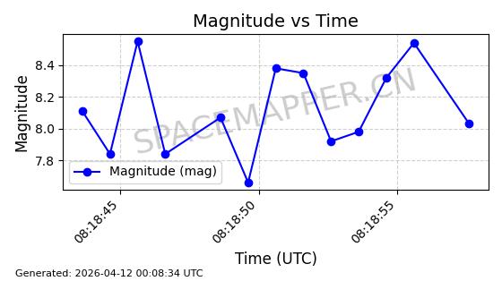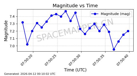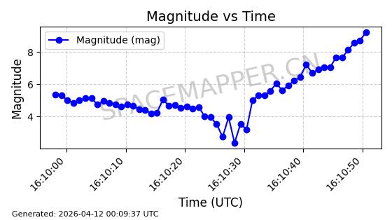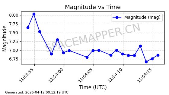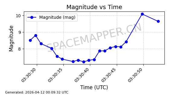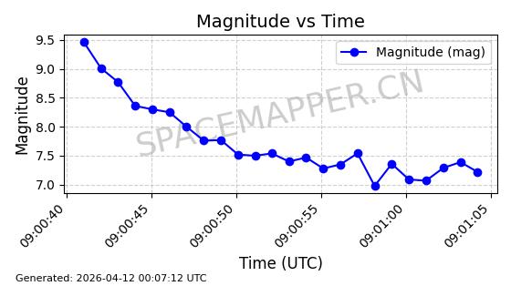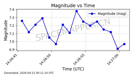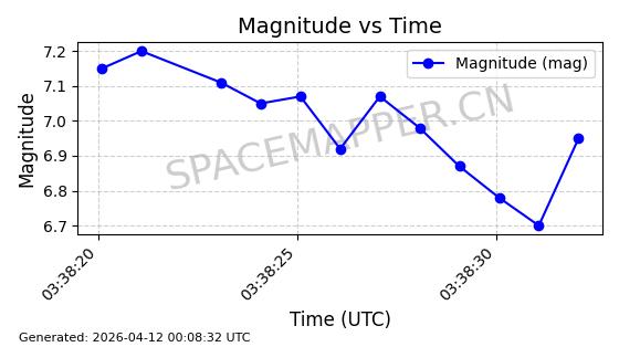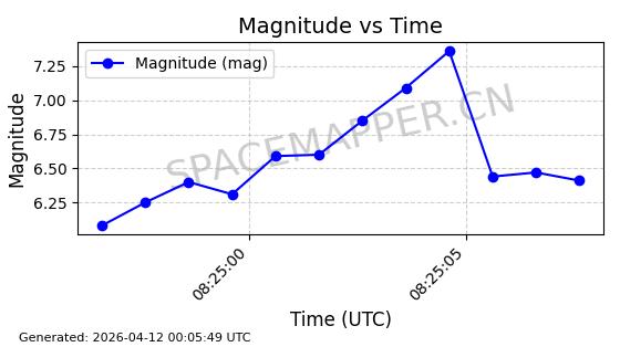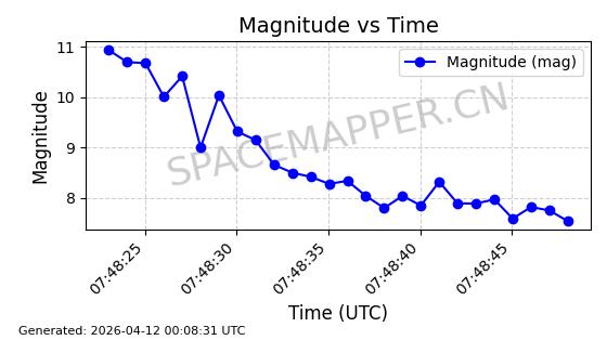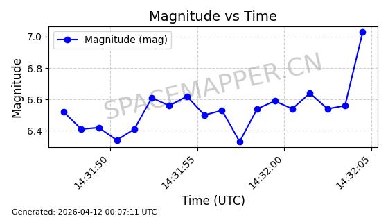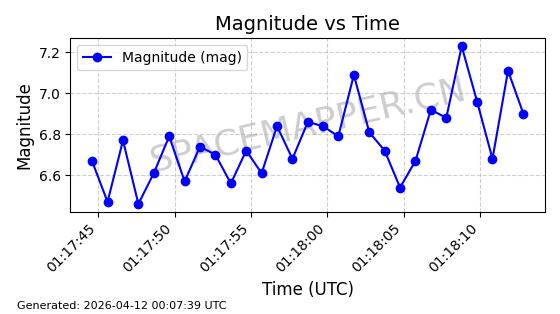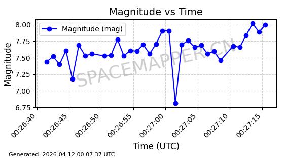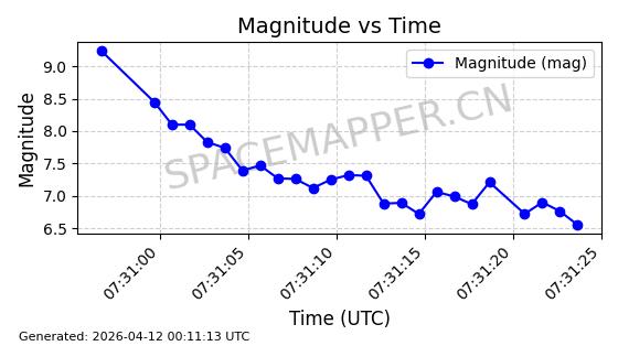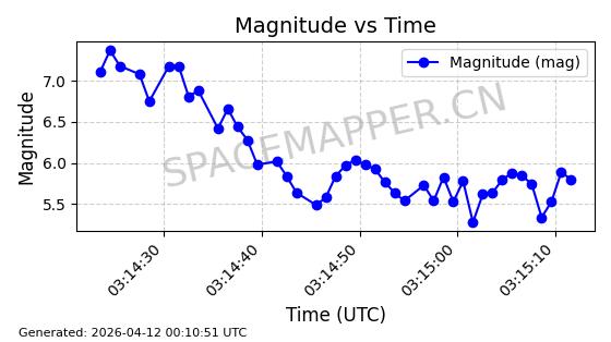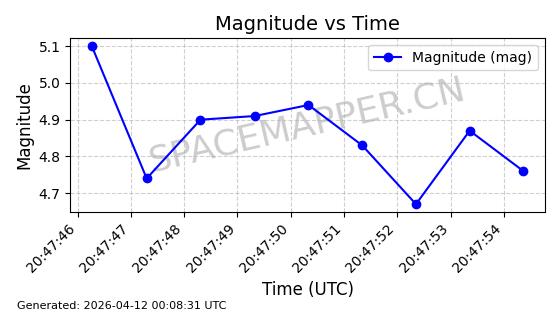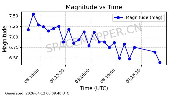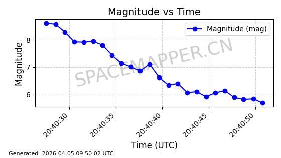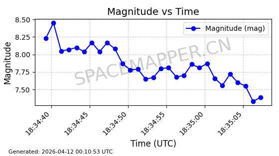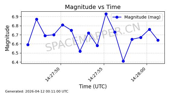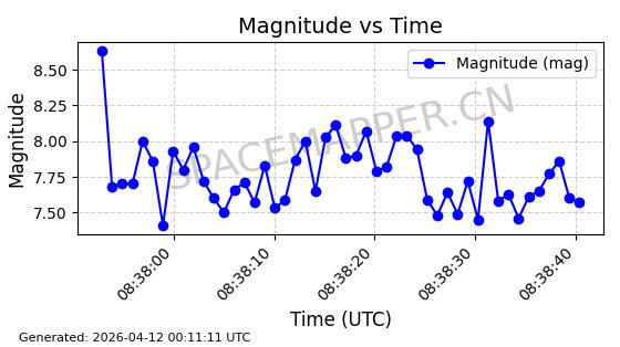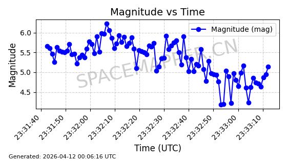 | STARLINK-32361 | 61933 | 61933 | 2024-11-11 同日期轨道 2024-207X 同批次轨道 | 在轨 | 94分钟 | 43.0010 | 482.723 | 483.371 | 0.0000472 | 2026-04-11 06:55:09 | ||