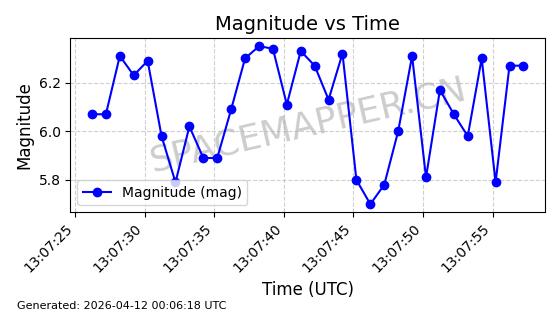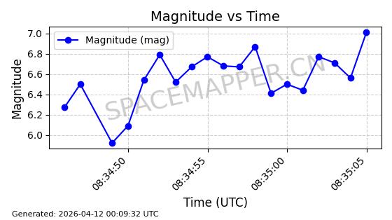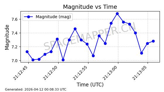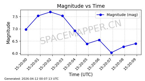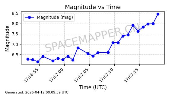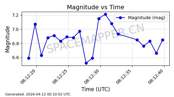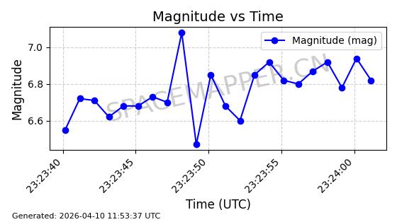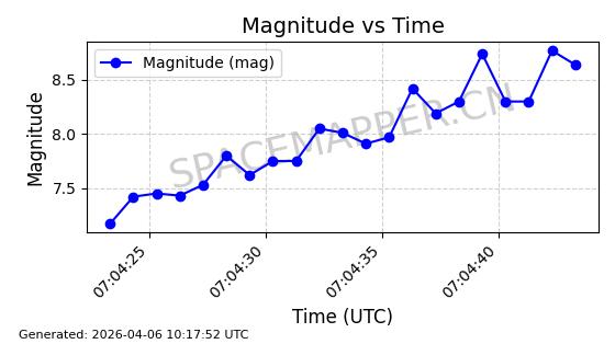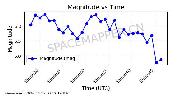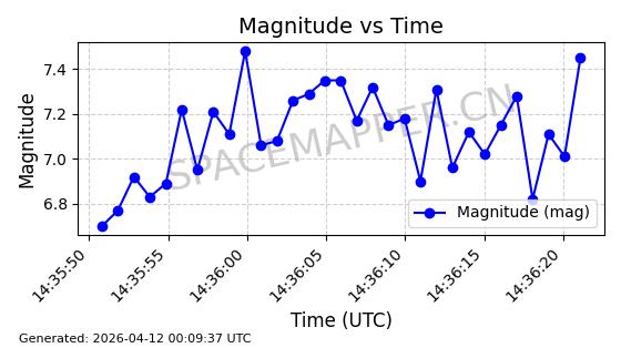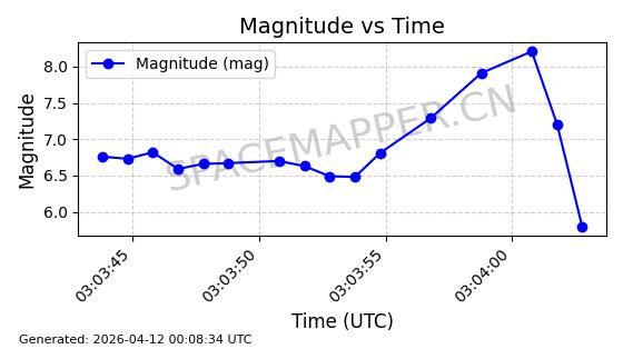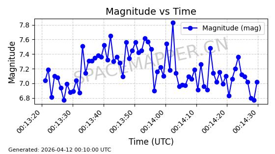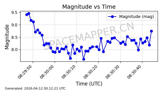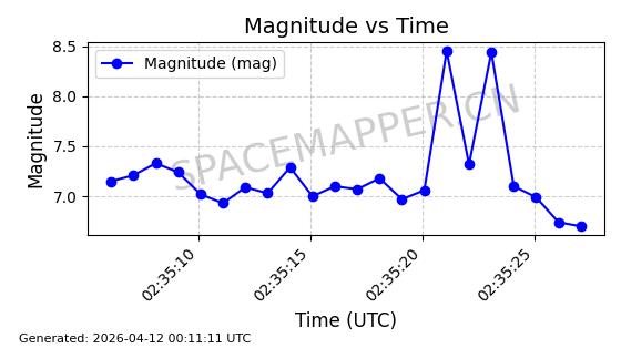 | STARLINK-32379 | 61851 | 61851 | 2024-11-07 同日期轨道 2024-202G 同批次轨道 | 在轨 | 94分钟 | 43.0037 | 482.531 | 483.567 | 0.0000754 | 2026-04-11 05:13:57 | ||