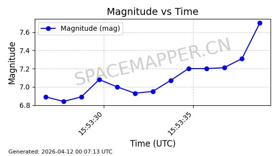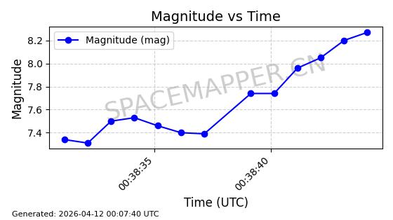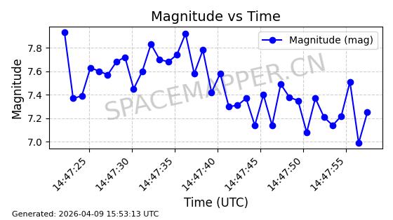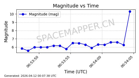 | STARLINK-32304 | 60738 | 60738 | 2024-08-28 同日期轨道 2024-152U 同批次轨道 | 在轨 | 94分钟 | 53.1604 | 474.404 | 476.074 | 0.0001218 | 2026-04-11 07:40:24 | ||