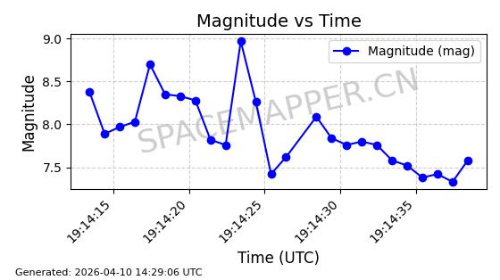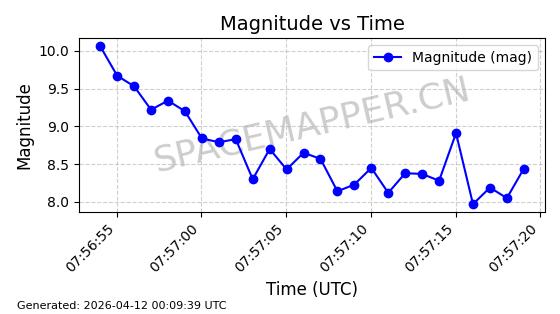 | STARLINK-32294 | 61675 | 61675 | 2024-10-26 同日期轨道 2024-193Q 同批次轨道 | 在轨 | 94分钟 | 53.1609 | 474.515 | 475.949 | 0.0001045 | 2026-04-11 05:48:09 | ||