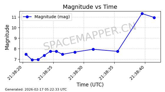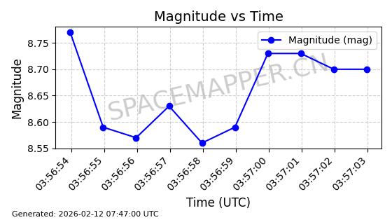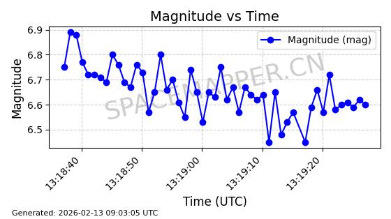 | STARLINK-1207 | 45380 | 45380 | 2020-03-18 同日期轨道 2020-019W 同批次轨道 | 已陨落 | 88分钟 | 53.0267 | 159.098 | 161.492 | 0.0001830 | 2025-02-11 18:59:30 | ||