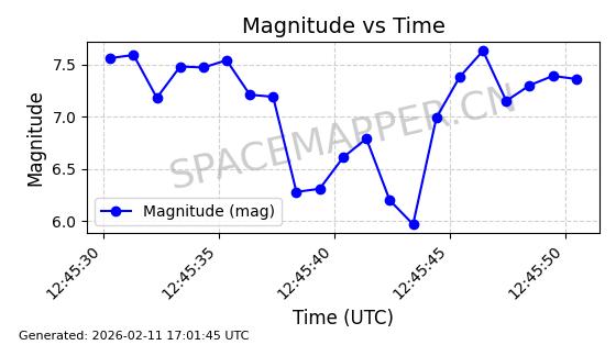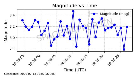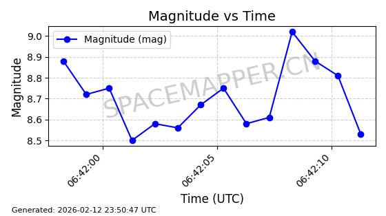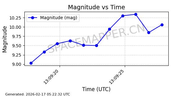 | STARLINK-1355 | 45563 | 45563 | 2020-04-22 同日期轨道 2020-025AJ 同批次轨道 | 已陨落 | 88分钟 | 53.0184 | 157.772 | 161.162 | 0.0002592 | 2025-09-25 16:17:37 | ||