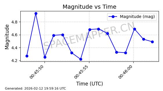 | STARLINK-1346 | 45560 | 45560 | 2020-04-22 同日期轨道 2020-025AF 同批次轨道 | 已陨落 | 87分钟 | 53.0264 | 142.536 | 152.612 | 0.0007720 | 2025-04-12 01:23:41 | ||
