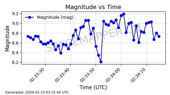| STARLINK-1258 | 45381 | 45381 | 2020-03-18 同日期轨道 2020-019X 同批次轨道 | 已陨落 | 87分钟 | 53.0284 | 143.542 | 149.83 | 0.0004818 | 2025-10-02 23:58:48 | ||