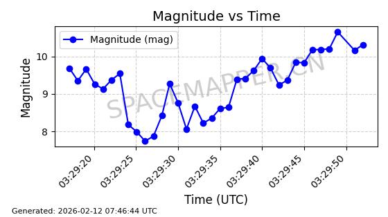 | STARLINK-1375 | 45546 | 45546 | 2020-04-22 同日期轨道 2020-025R 同批次轨道 | 已陨落 | 88分钟 | 53.0300 | 148.12 | 158.286 | 0.0007781 | 2025-03-12 13:40:53 | ||