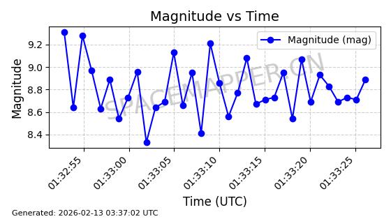| STARLINK-1325 | 45554 | 45554 | 2020-04-22 同日期轨道 2020-025Z 同批次轨道 | 已陨落 | 88分钟 | 53.0367 | 160.981 | 171.007 | 0.0007659 | 2026-01-29 19:19:31 | ||