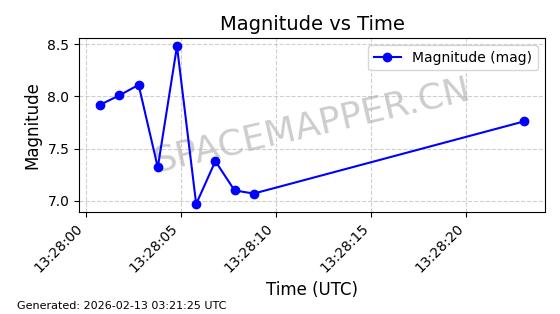 | STARLINK-1312 | 45398 | 45398 | 2020-03-18 同日期轨道 2020-019AQ 同批次轨道 | 已陨落 | 88分钟 | 53.0284 | 176.584 | 182.036 | 0.0004156 | 2025-11-10 07:54:56 | ||