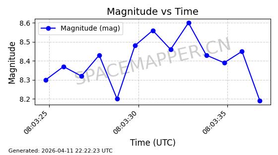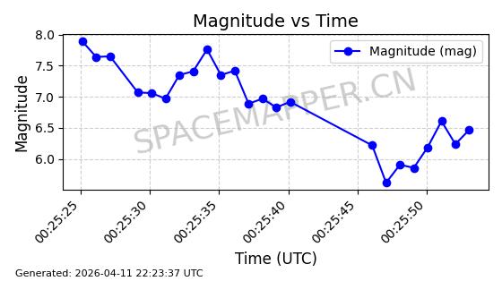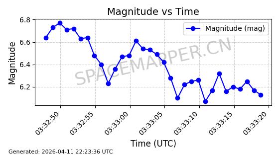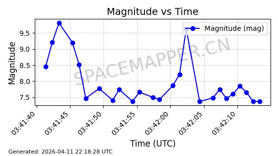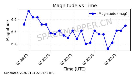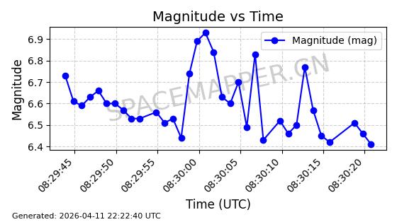 | STARLINK-32517 | 61980 | 61980 | 2024-11-14 同日期轨道 2024-210X 同批次轨道 | 在轨 | 94分钟 | 43.0035 | 482.051 | 483.913 | 0.0001356 | 2026-04-11 02:36:28 | ||