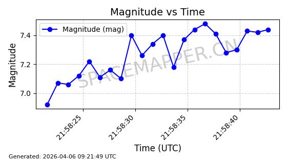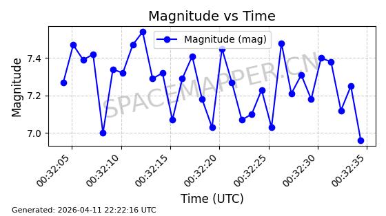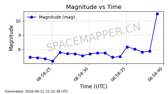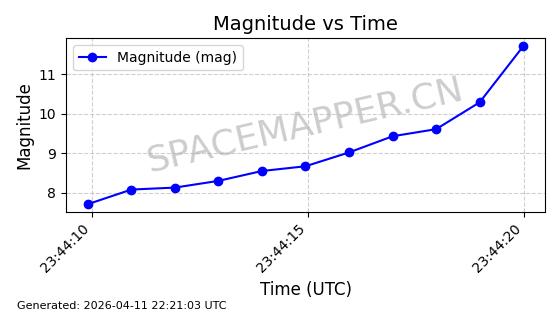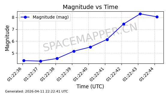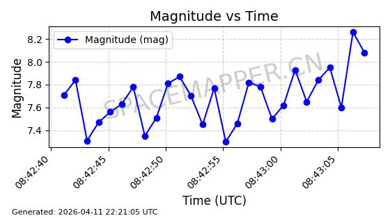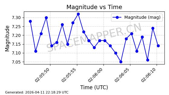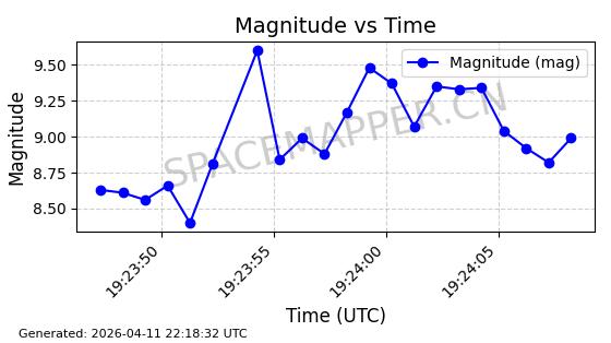 | STARLINK-32495 | 62052 | 62052 | 2024-11-21 同日期轨道 2024-216W 同批次轨道 | 在轨 | 94分钟 | 42.9979 | 482.586 | 483.292 | 0.0000514 | 2026-04-11 06:56:22 | ||