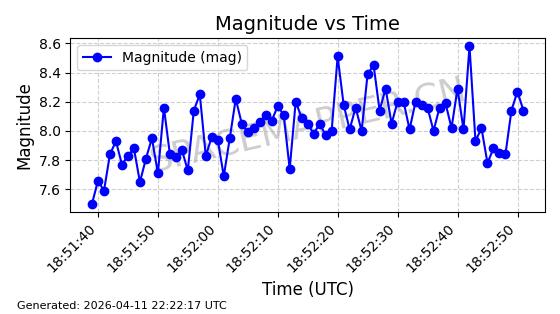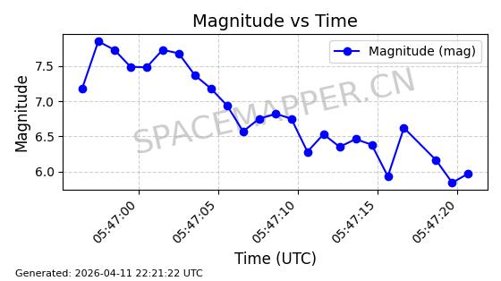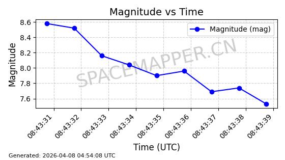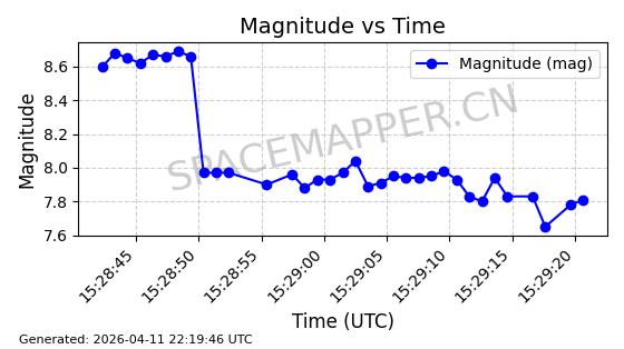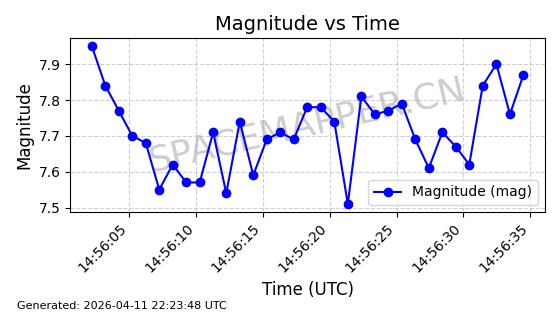 | STARLINK-32574 | 61954 | 61954 | 2024-11-14 同日期轨道 2024-209R 同批次轨道 | 在轨 | 94分钟 | 53.1619 | 474.658 | 475.69 | 0.0000752 | 2026-04-11 02:16:06 | ||