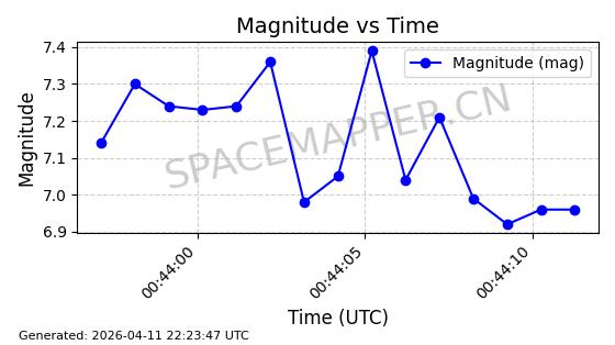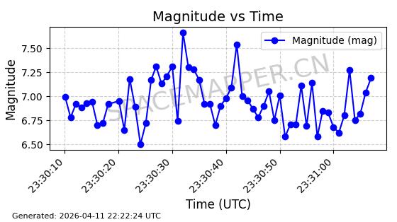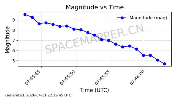 | STARLINK-32547 | 61919 | 61919 | 2024-11-11 同日期轨道 2024-207H 同批次轨道 | 在轨 | 94分钟 | 43.0048 | 482.206 | 483.882 | 0.0001220 | 2026-04-11 07:07:53 | ||