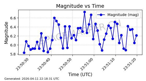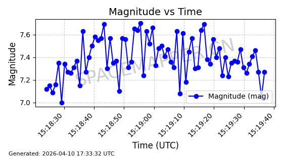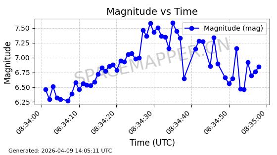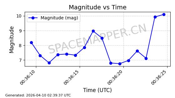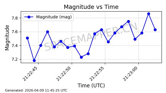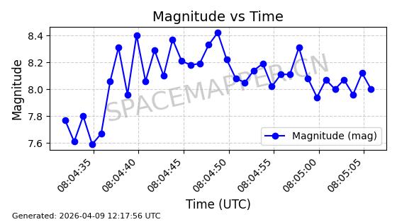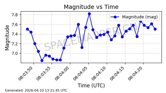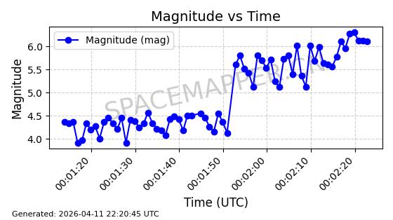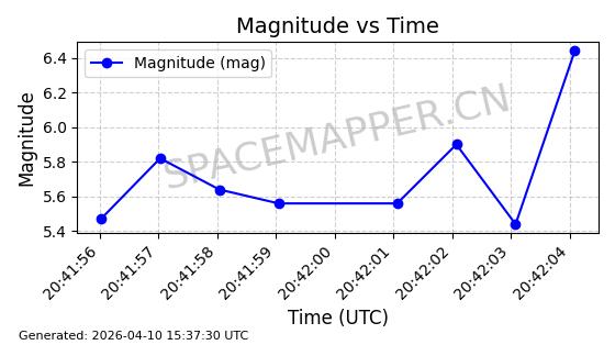 | STARLINK-32494 | 62053 | 62053 | 2024-11-21 同日期轨道 2024-216X 同批次轨道 | 在轨 | 94分钟 | 42.9980 | 482.975 | 483.045 | 0.0000051 | 2026-04-10 23:42:35 | ||