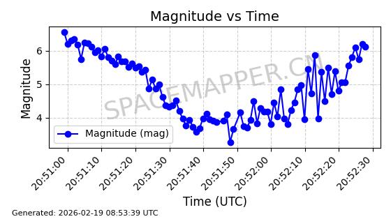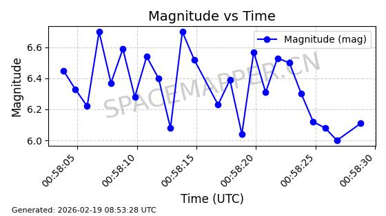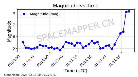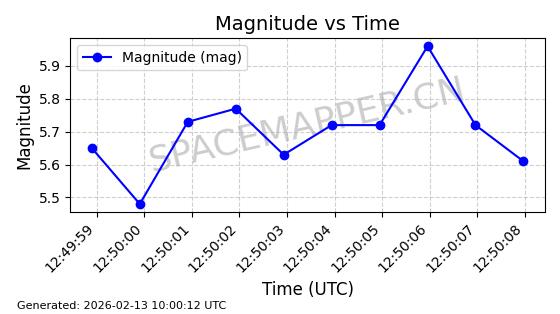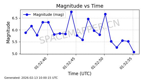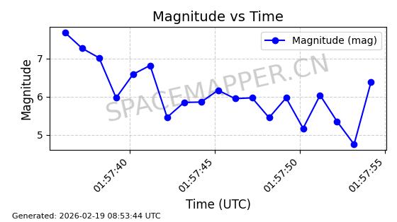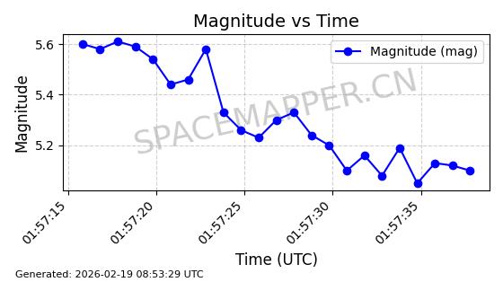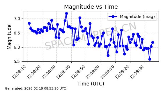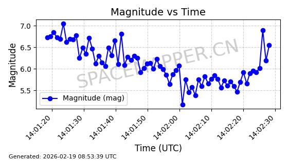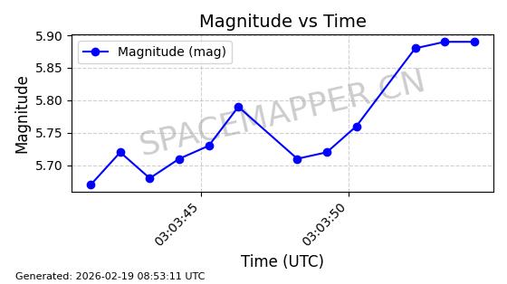 | STARLINK-5820 | 55781 | 55781 | 2023-03-03 同日期轨道 2023-028AS 同批次轨道 | 在轨 | 96分钟 | 69.9979 | 570.141 | 573.979 | 0.0002760 | 2026-02-18 01:12:21 | ||
