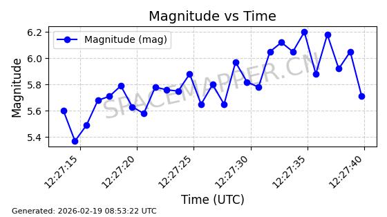 | STARLINK-5833 | 55773 | 55773 | 2023-03-03 同日期轨道 2023-028AJ 同批次轨道 | 在轨 | 96分钟 | 69.9973 | 569.889 | 574.189 | 0.0003093 | 2026-02-18 00:18:18 | ||