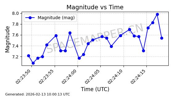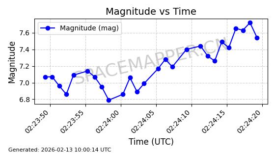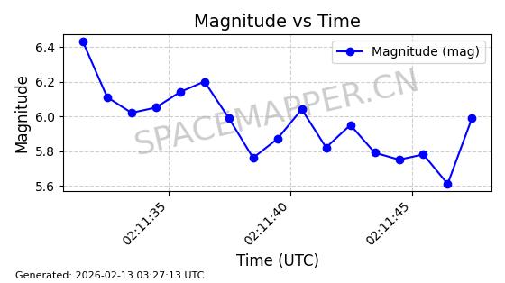 | STARLINK-5902 | 55998 | 55998 | 2023-03-24 同日期轨道 2023-042N 同批次轨道 | 在轨 | 96分钟 | 43.0026 | 558.106 | 560.088 | 0.0001428 | 2026-02-17 16:35:36 | ||