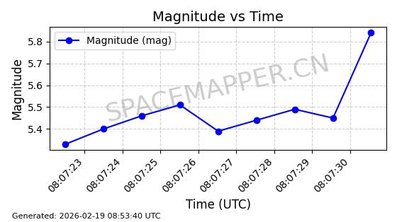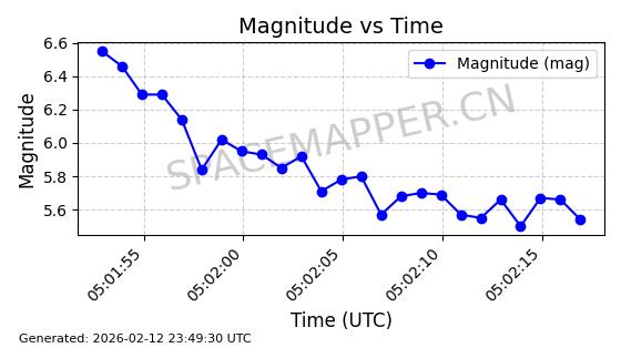 | STARLINK-5930 | 55928 | 55928 | 2023-03-17 同日期轨道 2023-037Q 同批次轨道 | 在轨 | 96分钟 | 70.0020 | 570.2 | 573.936 | 0.0002687 | 2026-02-18 06:44:09 | ||