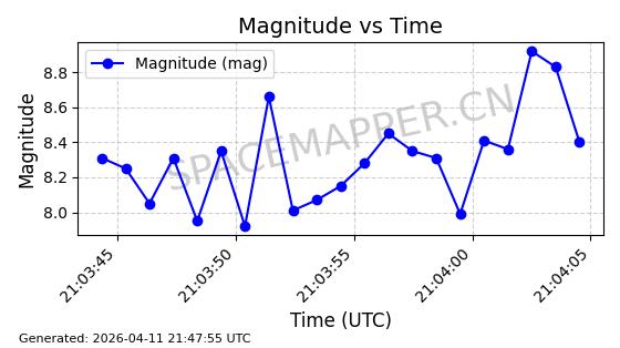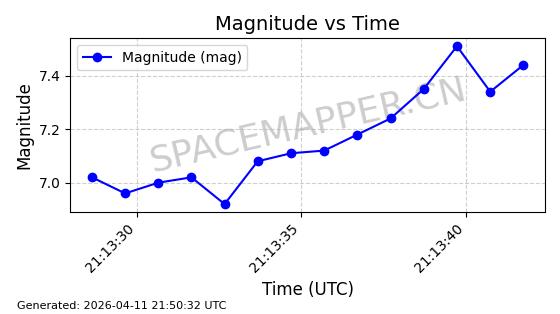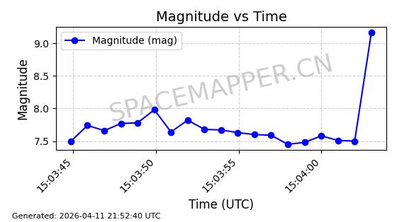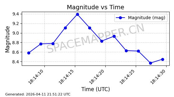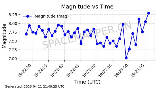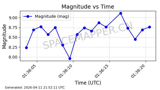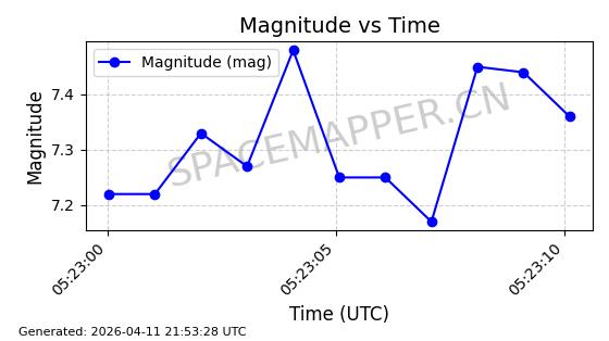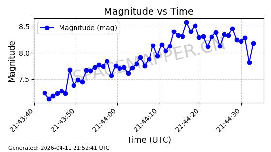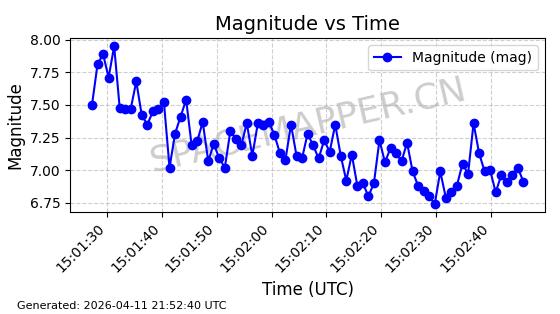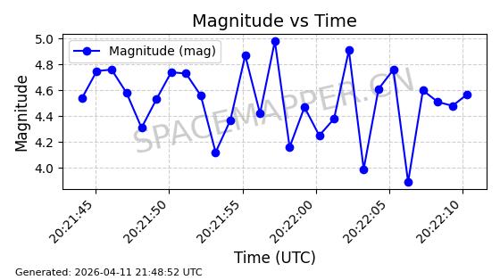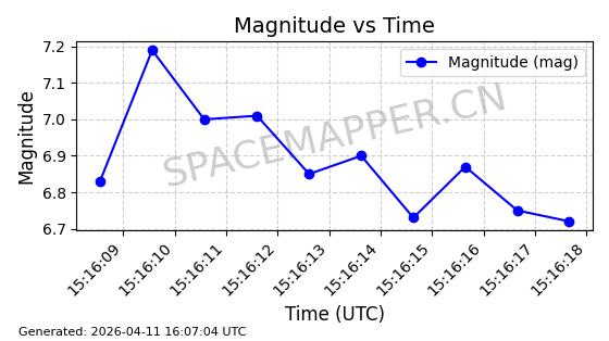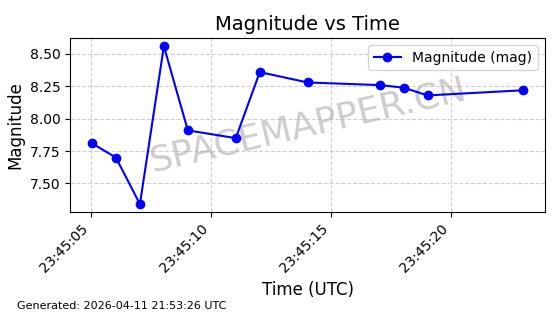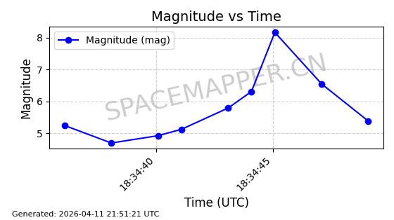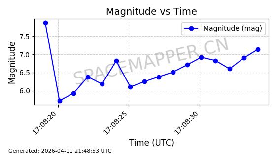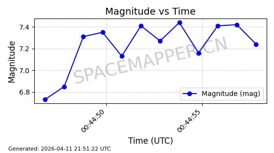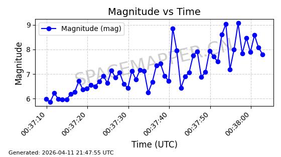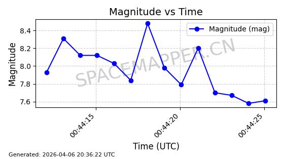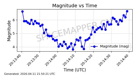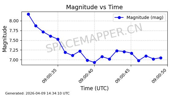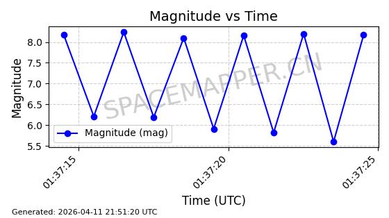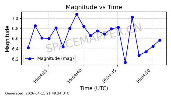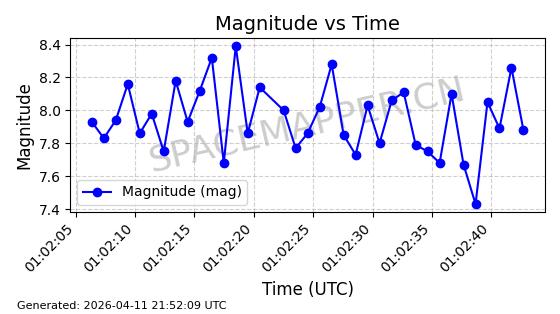 | STARLINK-32625 | 62154 | 62154 | 2024-11-30 同日期轨道 2024-224R 同批次轨道 | 在轨 | 94分钟 | 43.0055 | 482.61 | 483.42 | 0.0000590 | 2026-04-11 00:53:19 | ![]() | |