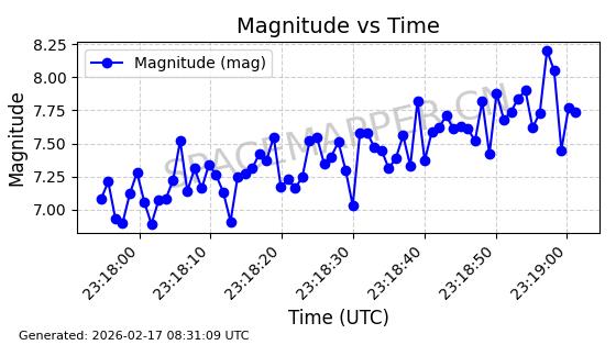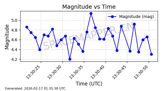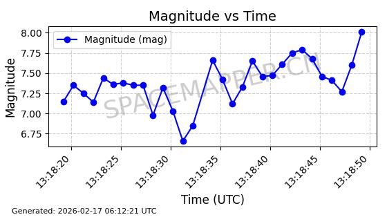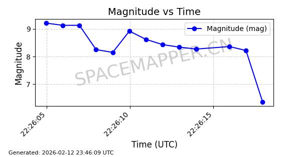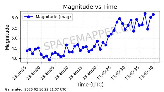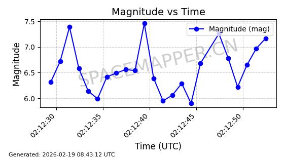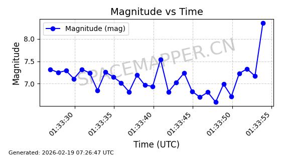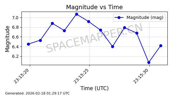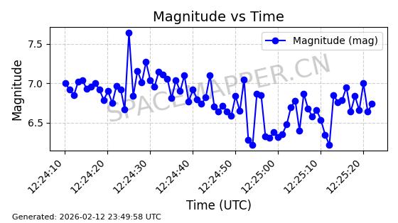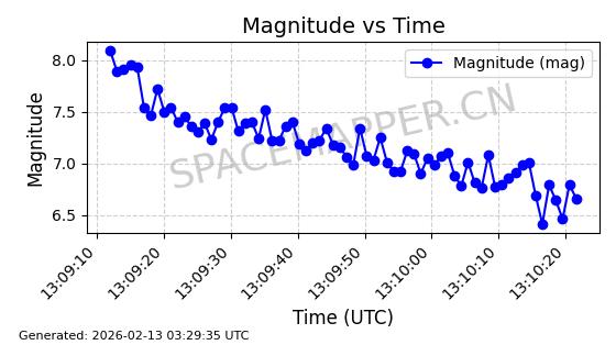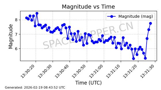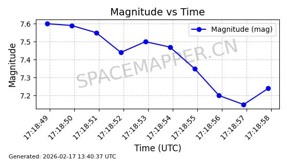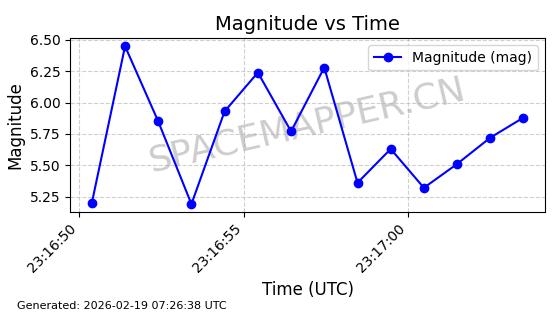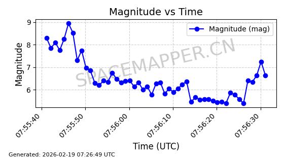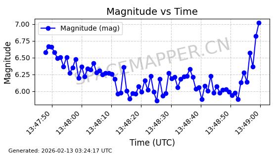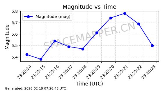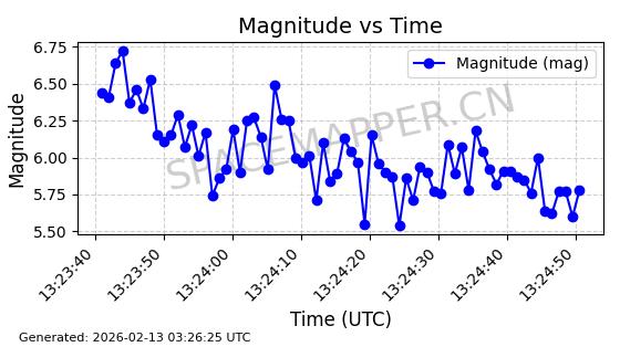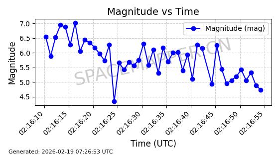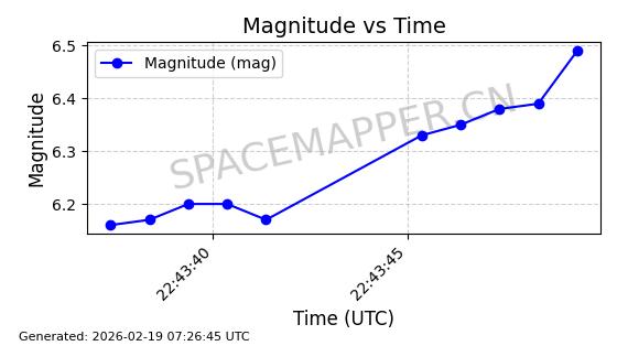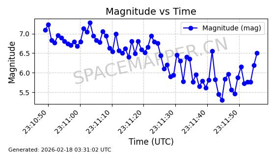 | STARLINK-6267 | 56400 | 56400 | 2023-05-04 同日期轨道 2023-061AC 同批次轨道 | 在轨 | 96分钟 | 43.0045 | 558.175 | 559.989 | 0.0001306 | 2026-02-18 00:31:52 | ||