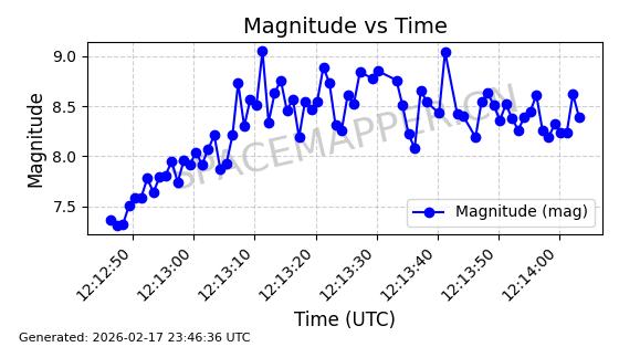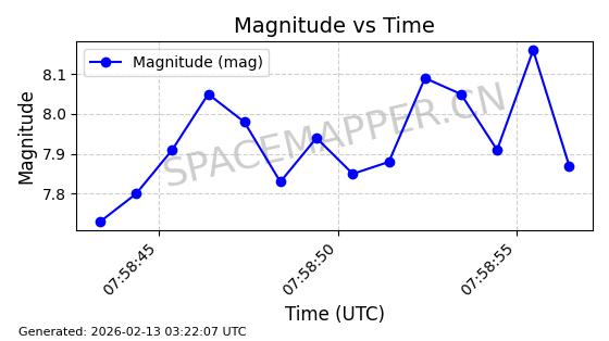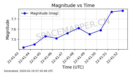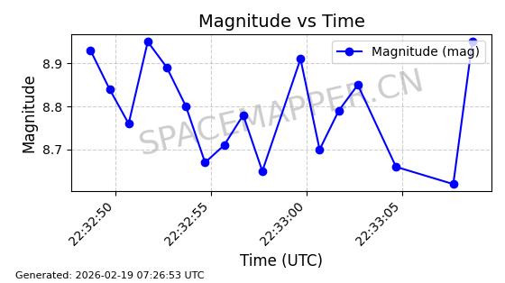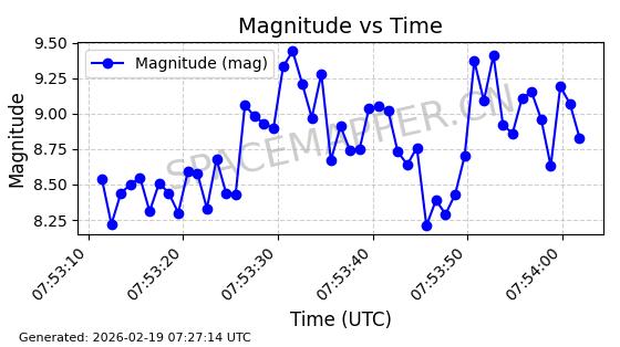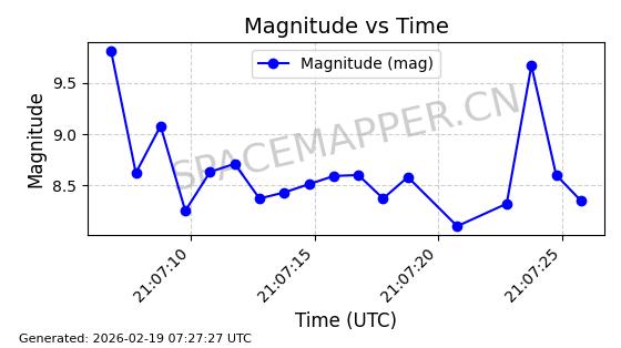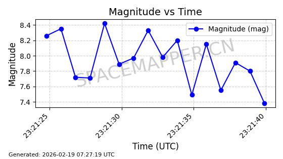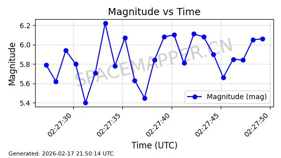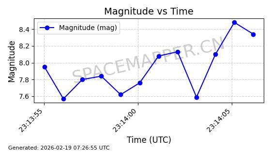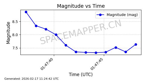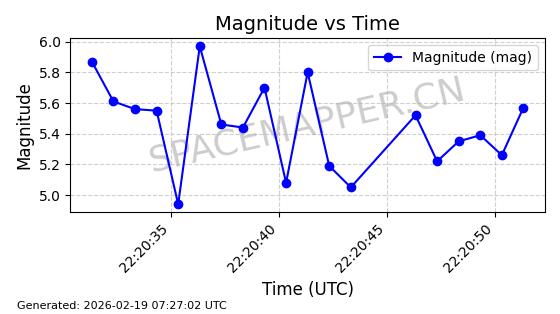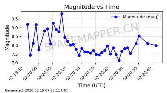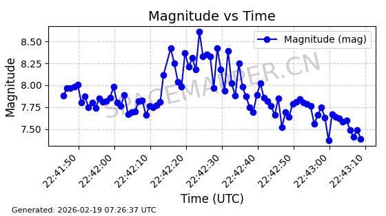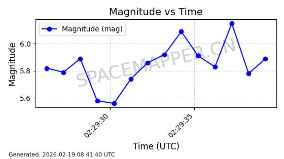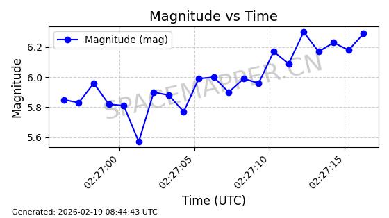 | STARLINK-5887 | 56349 | 56349 | 2023-04-27 同日期轨道 2023-058AJ 同批次轨道 | 在轨 | 96分钟 | 97.6056 | 561.838 | 564.174 | 0.0001682 | 2026-02-17 23:09:04 | ||