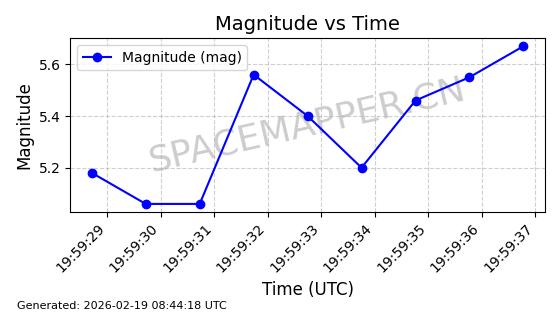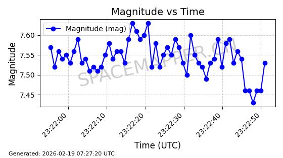 | STARLINK-5980 | 56326 | 56326 | 2023-04-27 同日期轨道 2023-058K 同批次轨道 | 在轨 | 96分钟 | 97.6053 | 560.643 | 565.373 | 0.0003407 | 2026-02-18 00:10:45 | ||