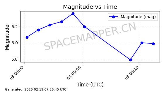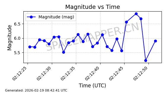 | STARLINK-6283 | 56406 | 56406 | 2023-05-04 同日期轨道 2023-061AJ 同批次轨道 | 在轨 | 96分钟 | 43.0044 | 557.876 | 560.328 | 0.0001767 | 2026-02-18 01:42:02 | ||