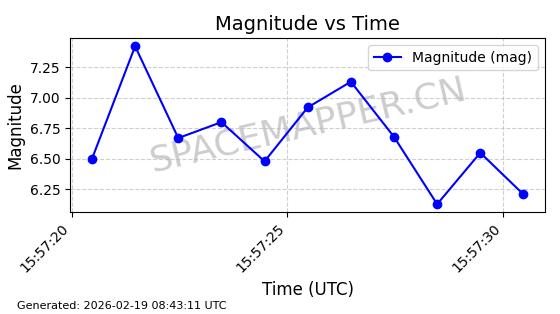 | STARLINK-6157 | 56379 | 56379 | 2023-05-04 同日期轨道 2023-061F 同批次轨道 | 在轨 | 96分钟 | 43.0029 | 558.548 | 559.632 | 0.0000781 | 2026-02-18 03:14:13 | ||