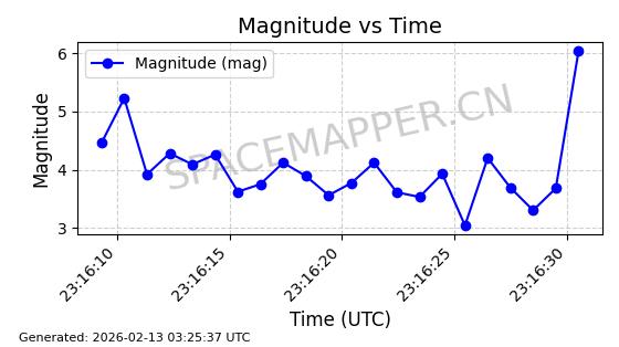 | STARLINK-6161 | 56380 | 56380 | 2023-05-04 同日期轨道 2023-061G 同批次轨道 | 已陨落 | 87分钟 | 42.9935 | 146.256 | 146.84 | 0.0000446 | 2025-07-27 16:18:04 | ||