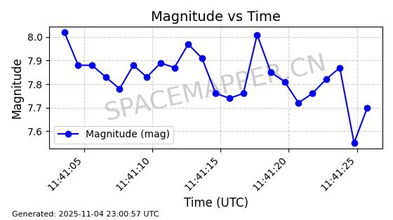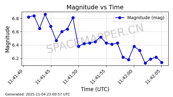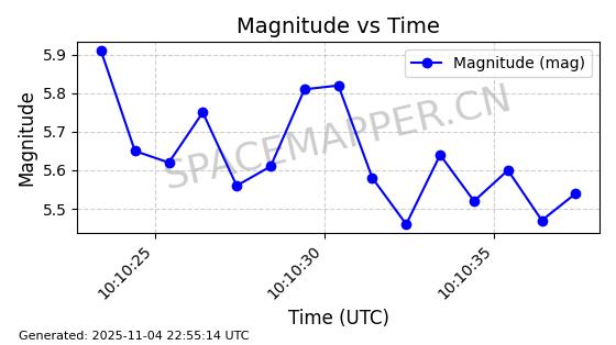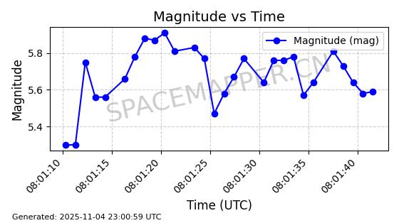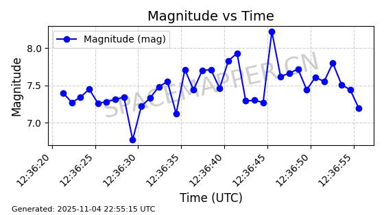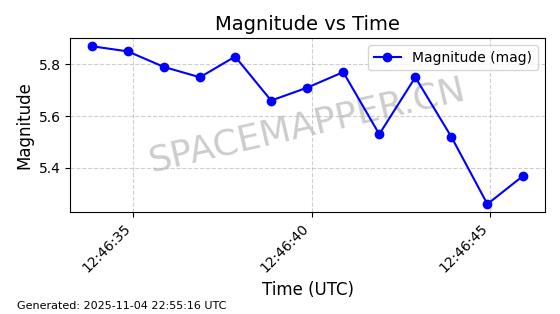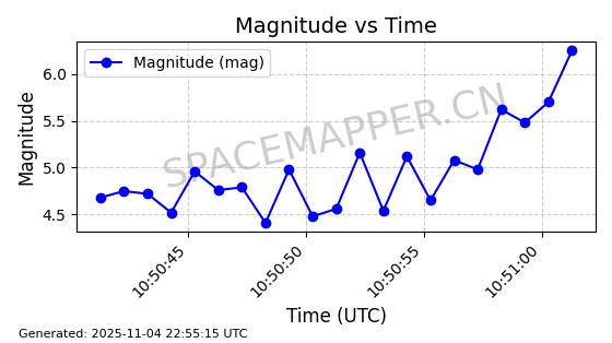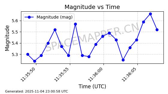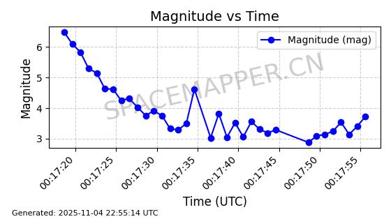 | STARLINK-3591 | 51870 | 51870 | 2022-03-03 同日期轨道 2022-022U 同批次轨道 | 在轨 | 95分钟 | 53.2159 | 538.75 | 540.732 | 0.0001432 | 2025-11-04 00:49:21 | ||