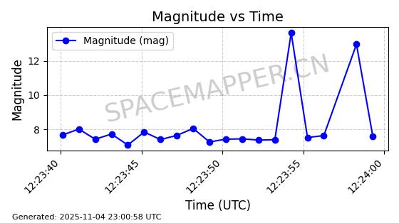 | STARLINK-3667 | 51999 | 51999 | 2022-03-09 同日期轨道 2022-025AV 同批次轨道 | 已陨落 | 87分钟 | 53.2023 | 138.585 | 150.783 | 0.0009349 | 2025-10-23 08:09:05 | ||