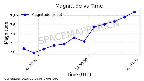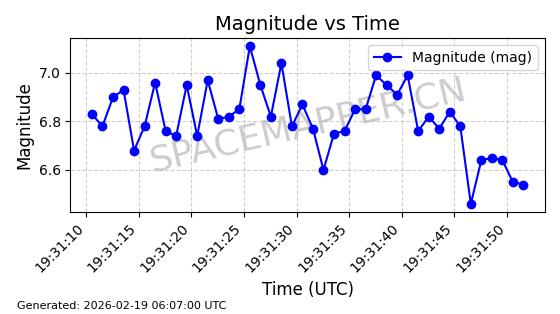 | STARLINK-30070 | 56707 | 56707 | 2023-05-19 同日期轨道 2023-067V 同批次轨道 | 在轨 | 95分钟 | 43.0006 | 539.702 | 540.826 | 0.0000811 | 2026-02-18 06:00:02 | ||