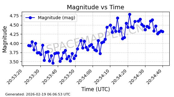 | STARLINK-30129 | 56689 | 56689 | 2023-05-19 同日期轨道 2023-067B 同批次轨道 | 在轨 | 96分钟 | 43.0038 | 557.143 | 560.479 | 0.0002404 | 2026-02-18 00:03:36 | ||